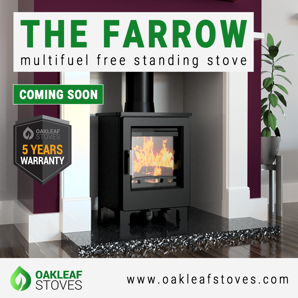 Watch our video for a sneak preview of our new stoves. Both The Birchley and The Farrow are currently available to view in our showroom and you are welcome to come and visit us to view them in person or visit oakleafstoves.com to find out more. Alternatively, for technical advice and prices, please call us on 0344 800 6586 (Monday - Friday 9am to 5pm).