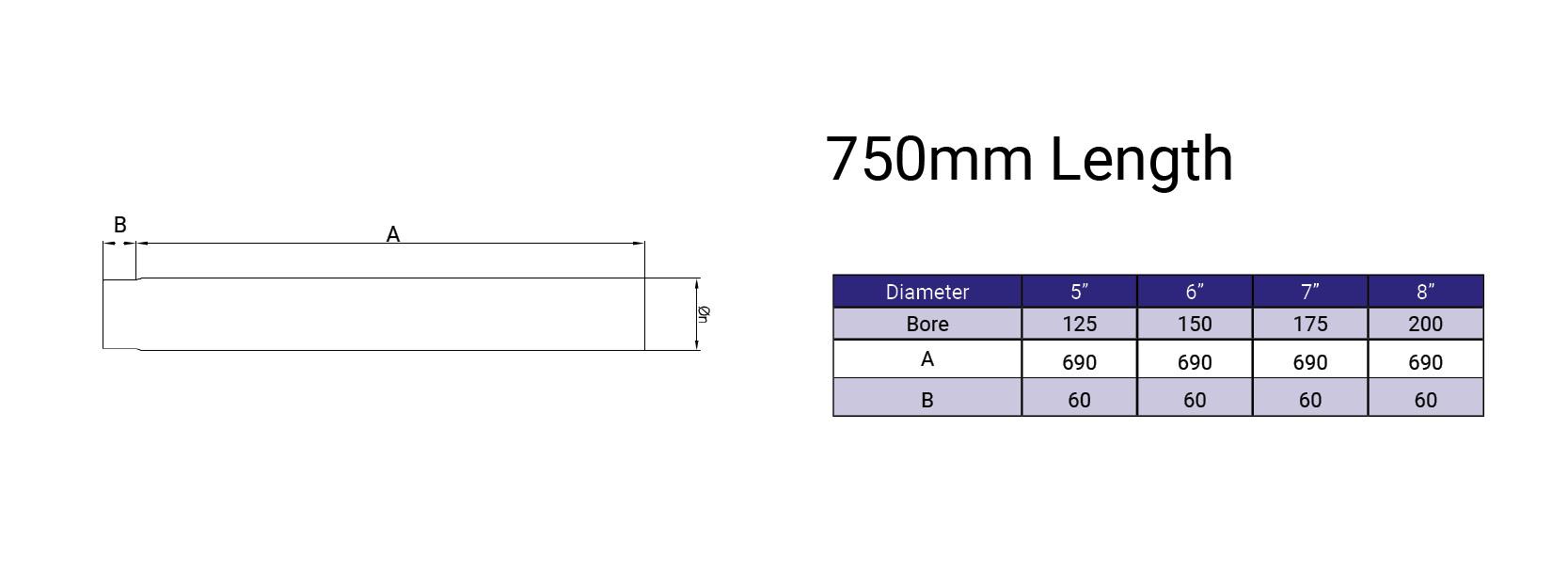 5" 750mm Length Stove Pipe